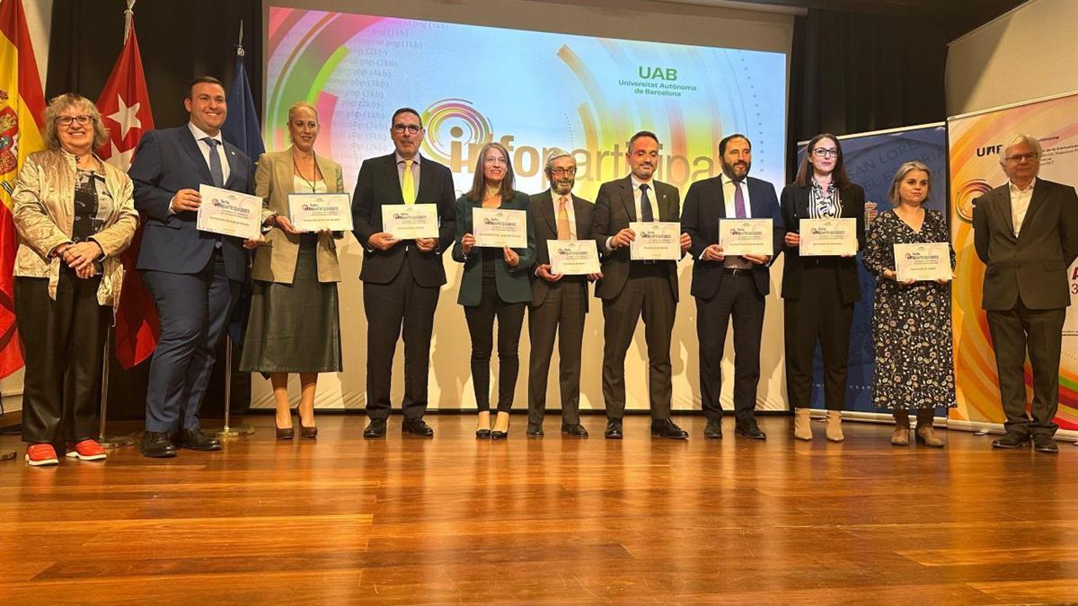 San Lorenzo de El Escorial ha sido la ciudad elegida por la Universidad Autónoma de Barcelona para entregar hoy los Sellos InfoParticipa 2023 a la Transparencia y la Comunicación en la Administración Local, a los nueve únicos ayuntamientos de la Comunidad de Madrid que lo han obtenido entre los que se encuentra el anfitrión del acto.