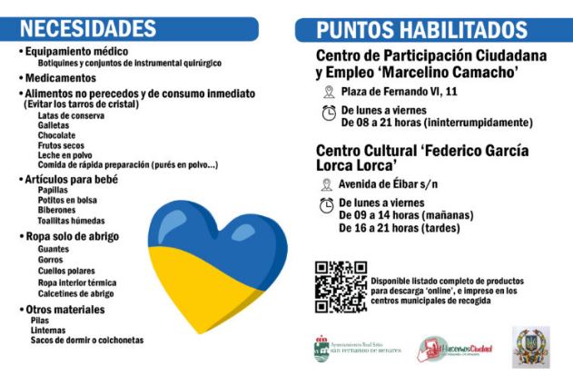El Ayuntamiento de San Fernando de Henares reactiva la Red de Solidaridad Ciudadana para la recogida de productos con destino a Ucrania
