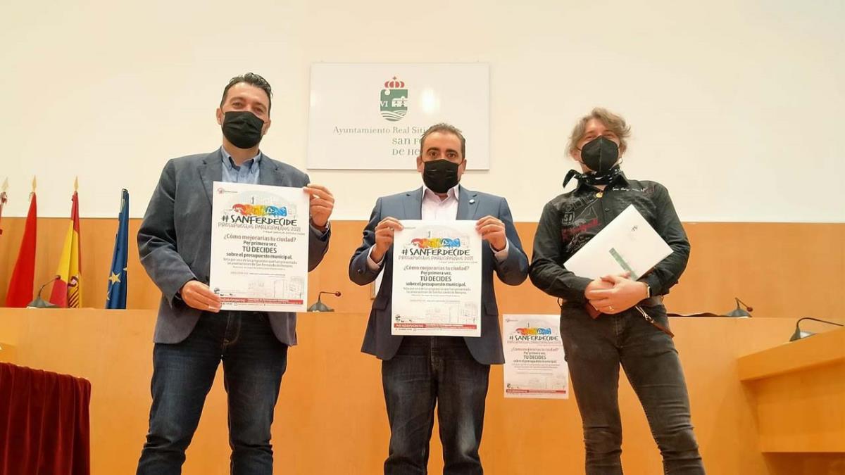 El alcalde de San Fernando, Javier Corpa, se ha reunido con el concejal de Hacienda, Alberto Hontecillas, y el técnico del área de Participación Ciudadana, Antonio Dueñas, para dar a conocer los resultados de los Presupuestos Participativos, dentro de la campaña "#SanferDecide", destinada a dar voz a los vecinos del municipio.