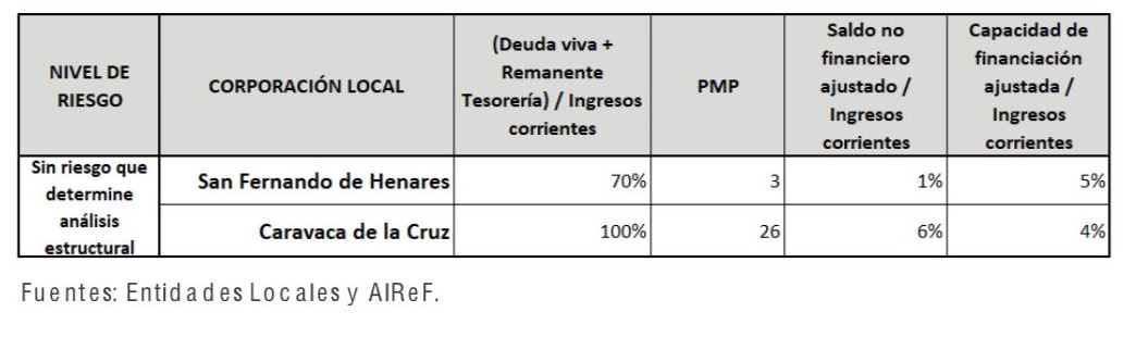 Según explica dicho informe, la ciudad sale de esta zona de riesgo por “mejorar sustancialmente su posición neta”. En este sentido, el informe concreta que “el Ayuntamiento de San Fernando de Henares ha reducido su deuda viva de forma importante tras un proceso de quita llevado a cabo en una entidad dependiente y, asimismo, ha mejorado los saldos que determinan su capacidad de retorno (mejora que será aún mayor cuando se materialicen los ingresos derivados de la venta de los inmuebles de la citada entidad dependiente). Esta situación extraordinaria hace que la AIReF deje de incluir en el análisis de riesgo de sostenibilidad a este consistorio”.