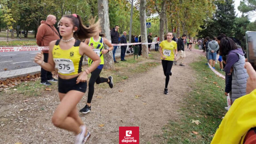 El domingo por la mañana se inauguró la temporada de Cross en El Parque de el Paraíso (Madrid), con el Cross de Suanzes. Se trata de un circuito duro, con el terreno más exigente de lo esperado, con largos trozos de hierba. En la categoría sub 16 chicas, la carrera de 2.000 metros se salió rápido, y pronto se selecciono, yéndose por delante un grupo de chicas, y por detrás un grupito con Alejandra y Ana Nerea. Finalmente, Alejandra quedó en 8ª posición y Ana Nerea 10ª. Belén no aguantaba el ritmo y quedó 18ª, mientras que Inés, en su debut, fue de menos a más hasta el puesto 21. Carolina alcanzó la posición 39º superando sus molestias, y Alea finalizó en el puesto A 51, con muchas molestias desde antes de la carrera. La corredora Ainara se tuvo que retirar.