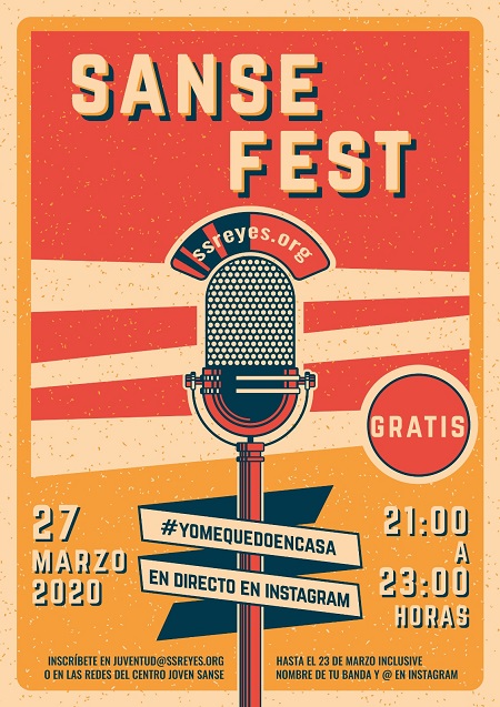 El Ayuntamiento de Sanse quiere hacer lo más llevadero posible para los vecinos del municipio el confinamiento en sus respectivos hogares. Por ello, la concejalía de Juventud organiza el #YoMeQuedoEnCasaSanseFest, un festival musical que se emitirá en directo, por la técnica del streaming, a través de las cuentas Instagram de los artistas y músicos del municipio que se apunten a la convocatoria.