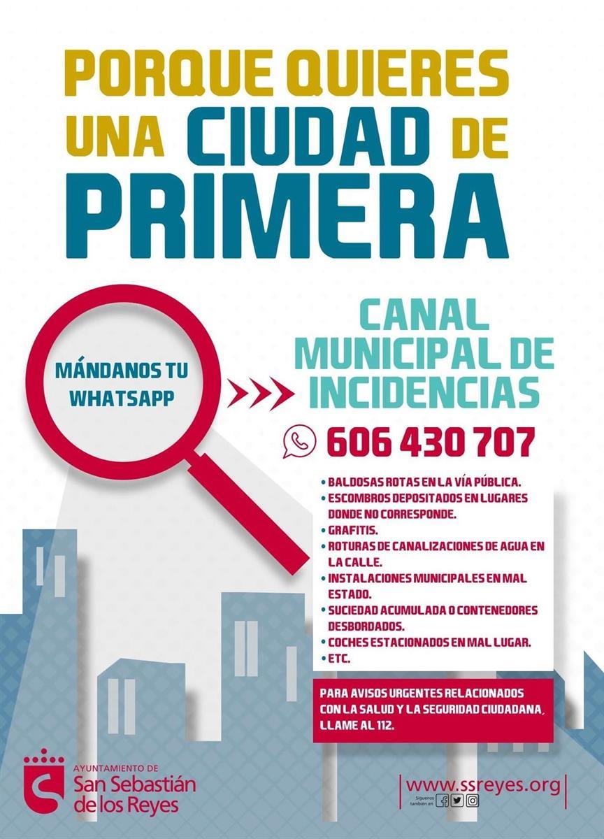 Se trata de un número de WhatsApp, el 606 430 707, mediante el cual el consistorio canalizará los avisos que realicen los vecinos y que serán transmitidos de inmediato al departamento correspondiente, dando una respuesta lo más adecuada y rápida.