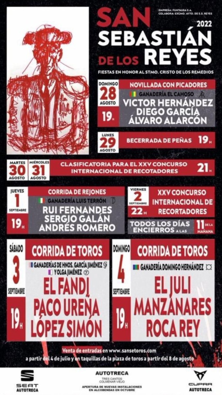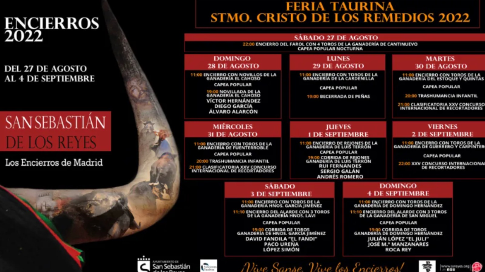 San Sebastián de los Reyes volverá a celebrar este año 2022 con más fuerza e intensidad sus encierros y su feria taurina durante las Fiestas del Santísimo Cristo de los Remedios entre los días 27 de agosto y 4 de septiembre.