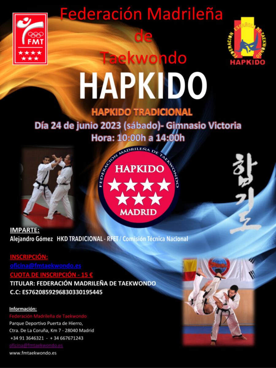 Del mismo modo, el Club Victoria organiza, junto con la Federación Madrileña de Taekwondo, el seminario oficial de Hapkido tradicional, donde todos los amantes de las artes marciales podrán aprender y profundizar sobre este sistema coreano. Se dará el 24 de junio, de 10:00 a 14:00 horas, en el Gimnasio Victoria de Sanse.