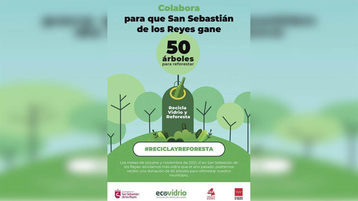San Sebastián de los Reyes se adhiere a esta campaña de aumentar en un 10% las toneladas de vidrio recicladas en octubre y noviembre, que conllevará a que Ecovidrio se comprometa a realizar una plantación y reforestación con 50 árboles y/o arbustos autóctonos.