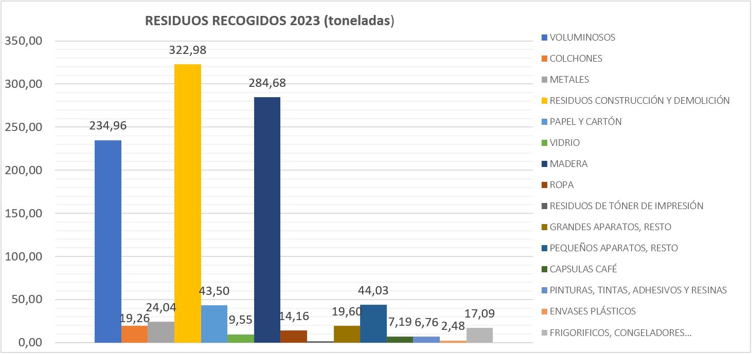Además, durante el año 2023 el Punto Limpio ha recibido 32.104 visitas, que se ha traducido en un total de 1.080,26 toneladas de residuos recogidos