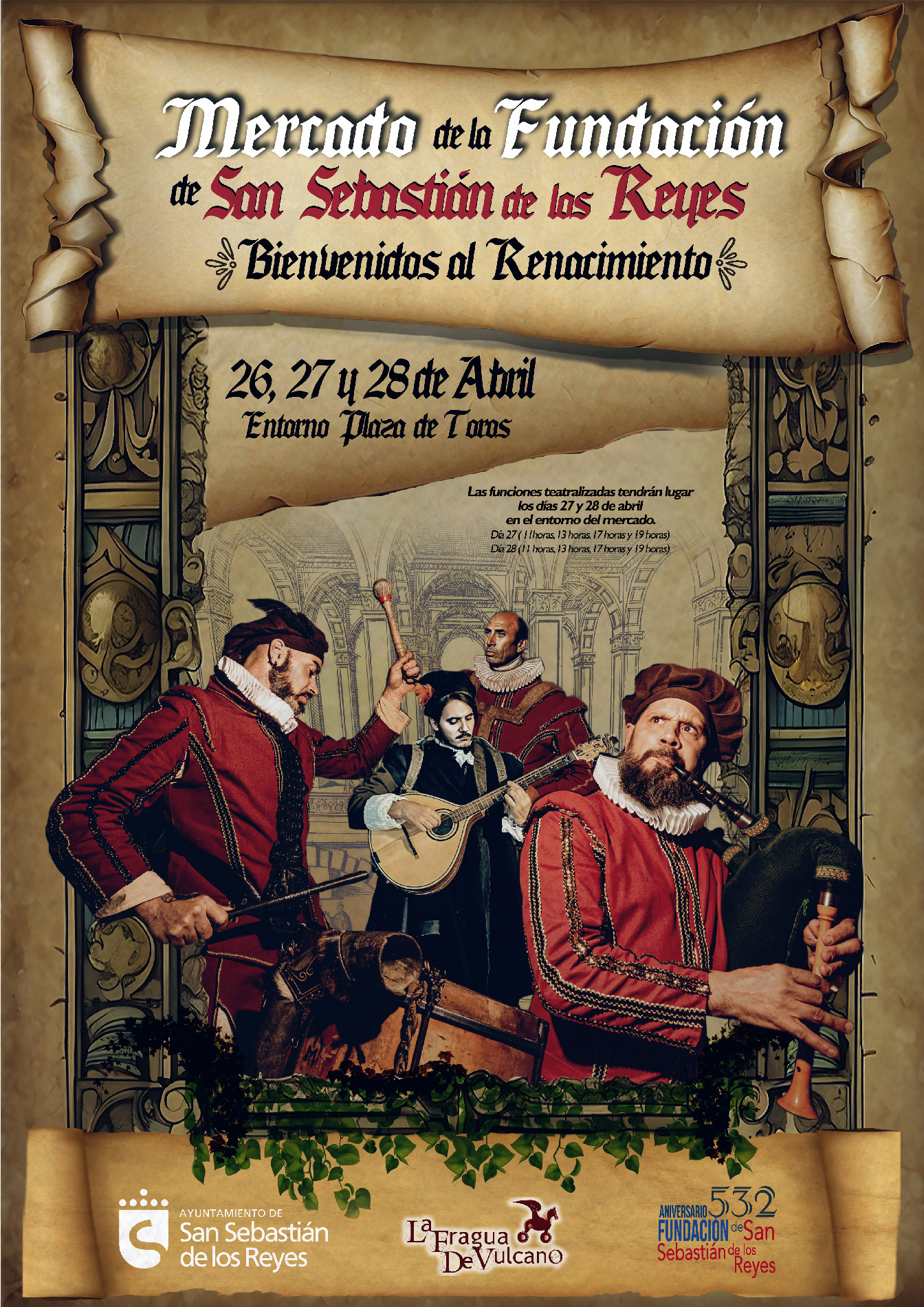 El 532 Aniversario de la Fundación de San Sebastián de los Reyes estará cargado de actividades, cuyo objetivo será valorar la historia, costumbres y cultura de nuestro municipio. En este sentido, una de las grandes novedades es el mercado renacentista, que tendrá lugar en el entorno de la plaza de toros, los días 26, 27 y 28 de abril. Una propuesta que servirá para retrotraernos cinco siglos atrás y conocer el origen de nuestra localidad.