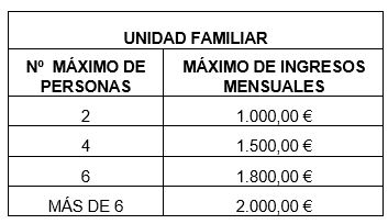 - Unidades familiares integradas por más de tres miembros un máximo de 300 euros al mes.