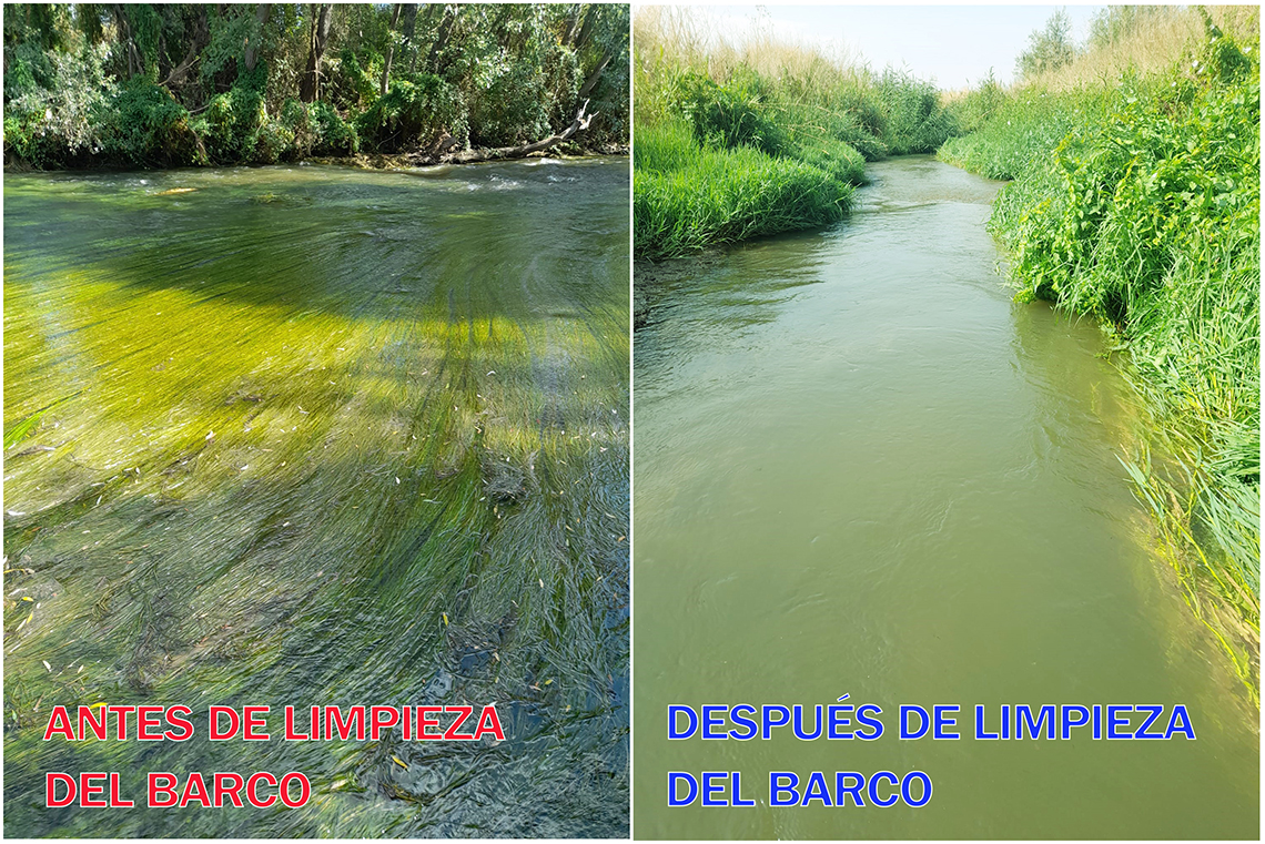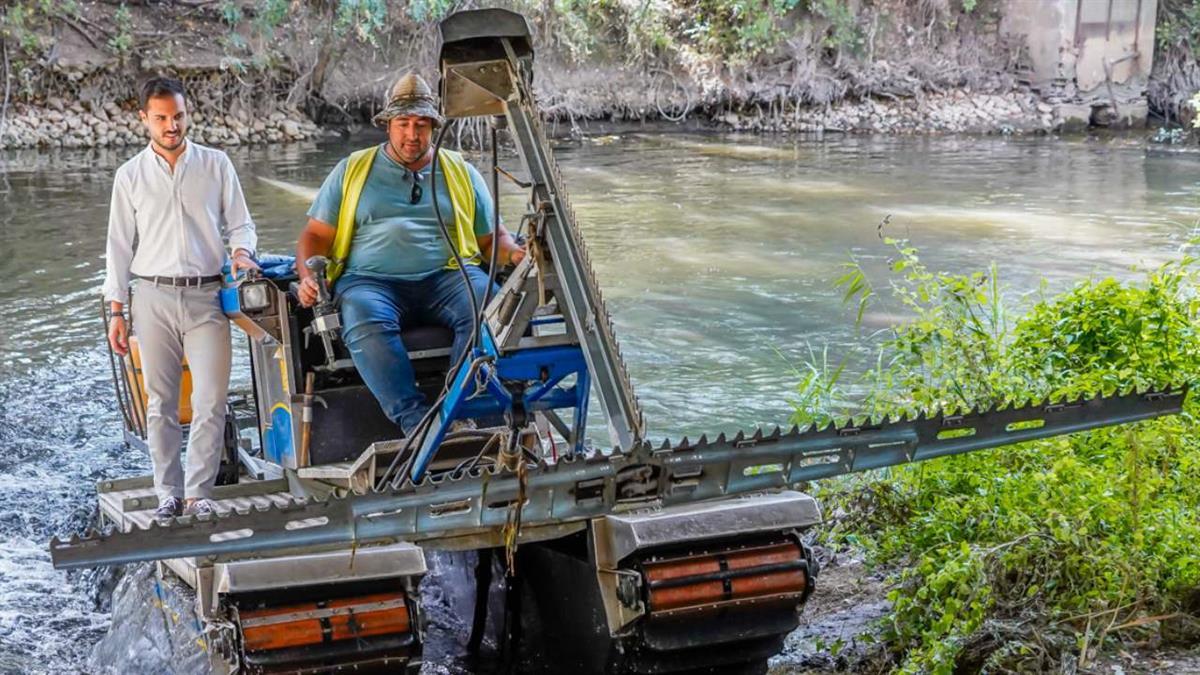 La máquina actúa sobre 7 kilómetros de cauce del río, desde la M203 (situada un poco más arriba que el Hospital) y descendiendo hasta pasado el barrio del Castillo. Se trata de un vehículo anfibio, uno de los pocos que hay en España, que cuenta con la tecnología más moderna traída de Suecia y dispone de una cuchilla sumergida, que va cortando unas determinadas plantas acuáticas donde anida los mosquitos, que se encuentran en el cauce del río a su paso por Torrejón.