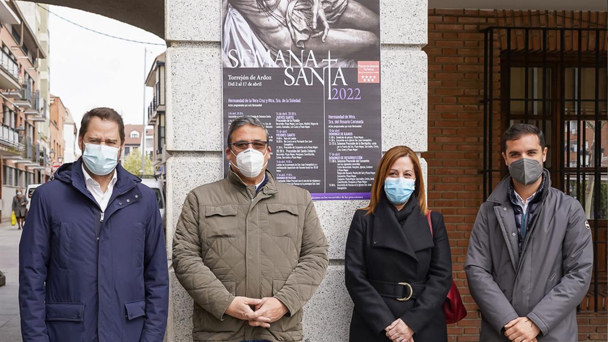 El alcalde de Torrejón de Ardoz, Ignacio Vázquez, y el concejal de Festejos y Juventud, Alejandro Navarro Prieto han presentado la programación de la Semana Santa de la ciudad junto con Yolanda Rodríguez, presidenta de la Hermandad de la Vera Cruz y Nuestra Señora de la Soledad, y Fernando Alonso, presidente de la Hermandad Nuestra Señora del Rosario. Este tradicional evento cultural está declarado Fiesta de Interés Turístico por la Comunidad de Madrid desde el año 2014.