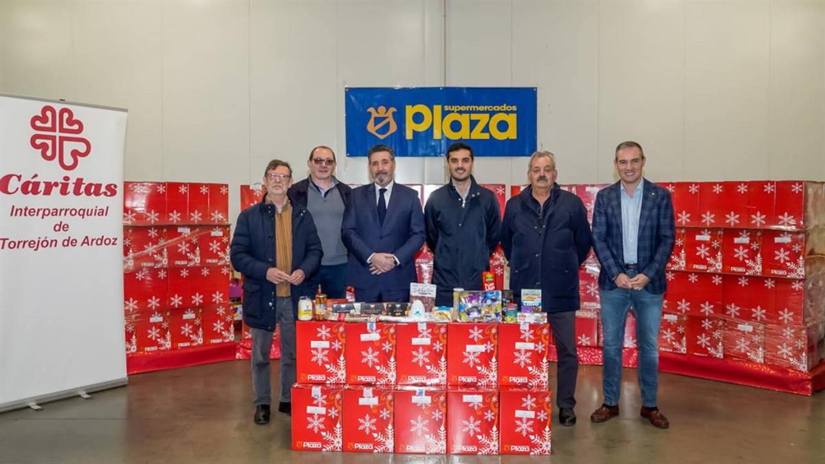El Ayuntamiento de Torrejón de Ardoz continúa con sus muestras solidarias. El alcalde, Alejandro Navarro Prieto, y el concejal de Bienestar, Educación e Inmigración, Rubén Martínez, entregaron en los almacenes del supermercado Plaza (que serán los encargados de repartirlas), al director de Cáritas Interparroquial de Torrejón, Julio Arévalo, 500 cestas con distintos alimentos y productos, que irán destinadas a las familias más necesitadas y con menos recursos económicos de la ciudad. Unas cestas que están compuestas por un surtido de género navideño, tres barras de turrón de Alicante, Jijona y chocolate con almendras, una caja de mazapanes además de café, galletas, un tarro de espárragos, un bote de mahonesa, una barra de fuet, otra de chorizo y otra de salchichón, una lata de magro de cerdo, fiambres, queso, una lata de mejillones, salchichas, aceitunas, calamares, atún y paté.