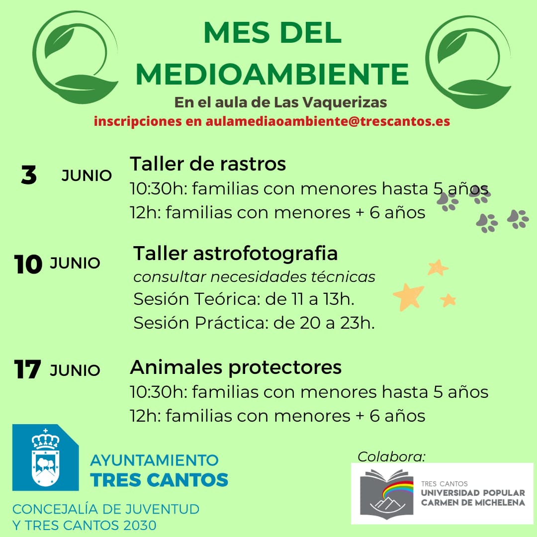 Los talleres son gratuitos previa inscripción en: aulamedioambiente@trescantos.es