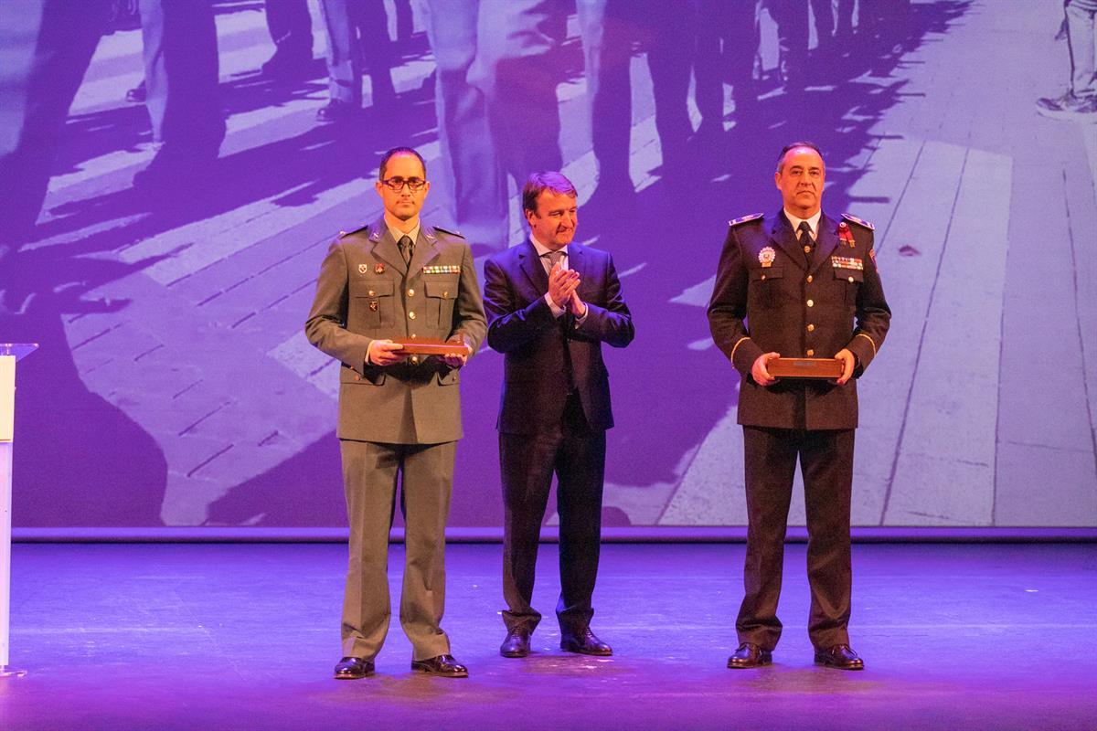 Policía Local y Guardia Civil. El comisario jefe de Policía Local, Pedro Álvarez, y el comandante jefe del Puesto de la Guardia Civil de Tres Cantos, Emilio Barbero, recibieron el premio en agradecimiento a la labor conjunta de los dos cuerpos por mantener la seguridad en la ciudad.
