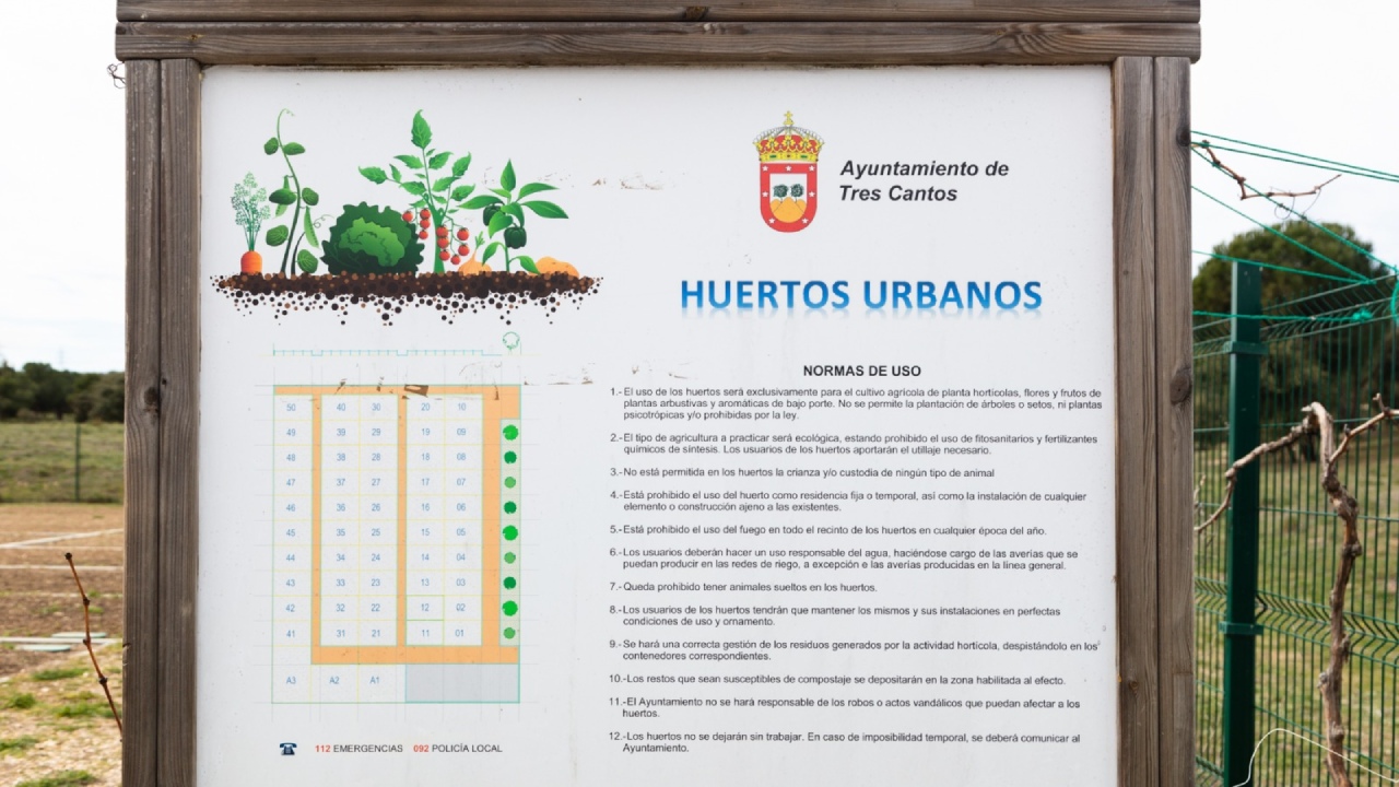 Entre las normas que deberán cumplir los nuevos hortelanos, a la vista en un gran cartel a la entrada de la instalación, está la de aplicar sistemas de riego que prioricen el ahorro de agua, criterios de agricultura ecológica y reciclar los restos orgánicos derivados del cultivo de su parcela. No podrán vender los productos de sus huertos ni se podrá instalar en ellas mobiliario o barbacoas.