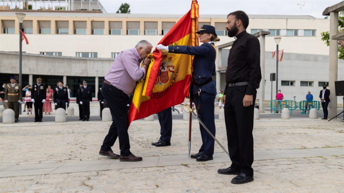 Tras rendir los honores reglamentarios y pasar revista a la Fuerza en formación, los jurandos besaron el Estandarte. Entre ellos, los miembros del equipo de Gobierno.