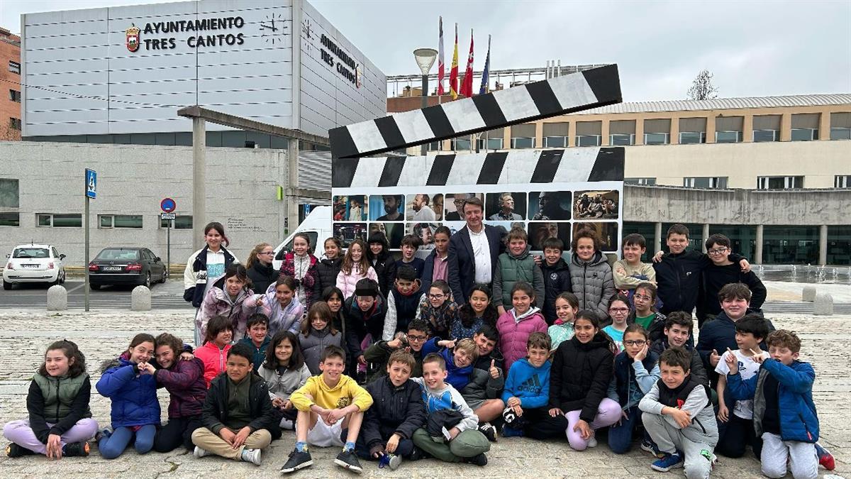 El alcalde de Tres Cantos, Jesús Moreno, con algunos de los alumnos que han asistido al Festival de Cine Infantil.