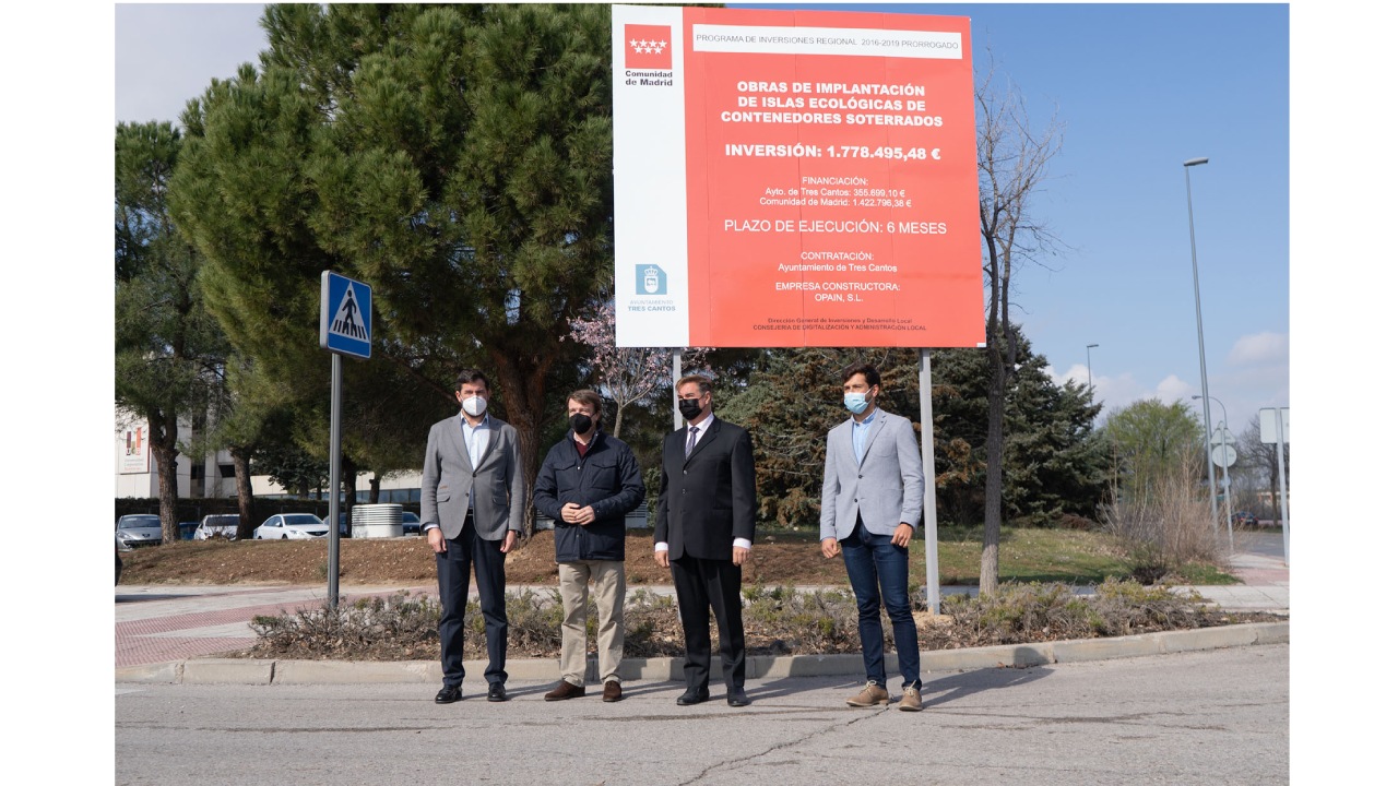 El Ayuntamiento de Tres Cantos ha dado comienzo a las obras de soterramiento del 100% de los contenedores de basura del municipio. La actuación consta de 60 islas ecológicas y tiene una inversión de 1,8 millones de euros; cantidad perteneciente al Programa de Inversión Regional (PIR).