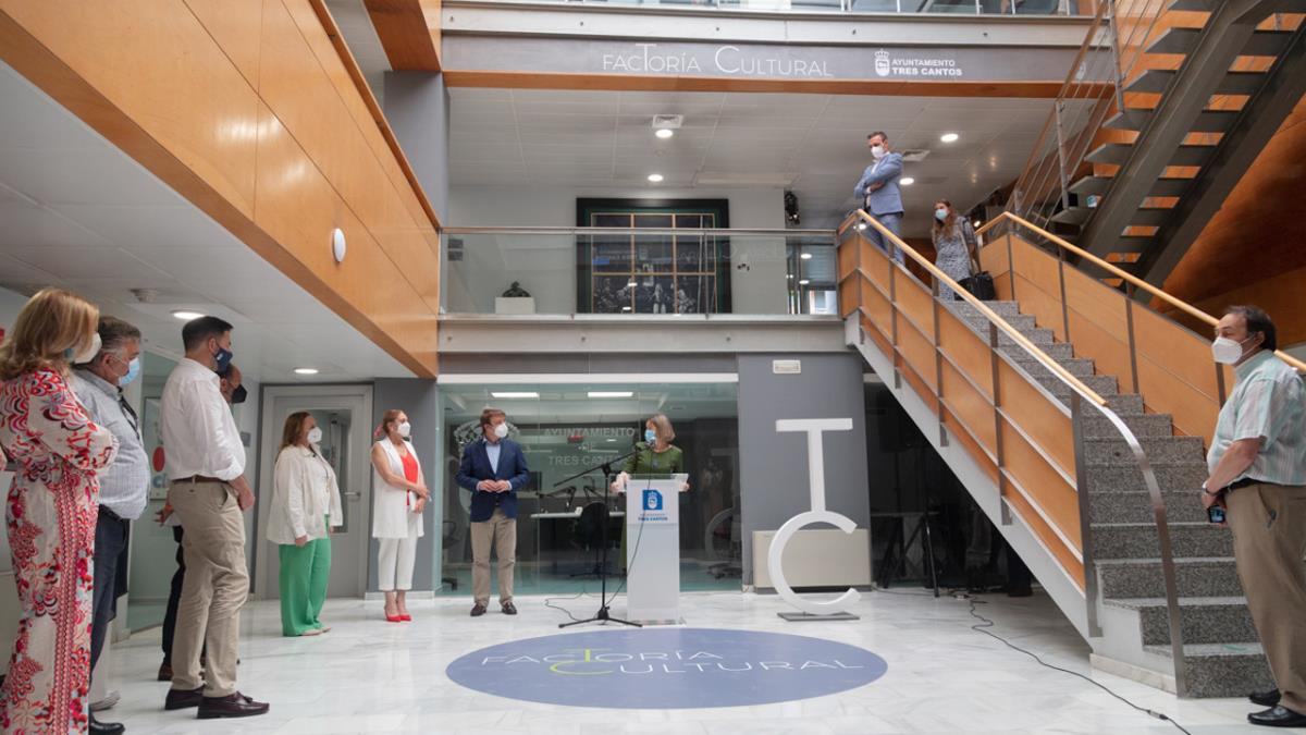 La consejera de Cultura, Turismo y Deporte, Marta Rivera de la Cruz, y el alcalde de Tres Cantos, Jesús Moreno, han inaugurado hoy las instalaciones de Factoría Cultural, un laboratorio creativo en el que tienen cabida todas las manifestaciones culturales.