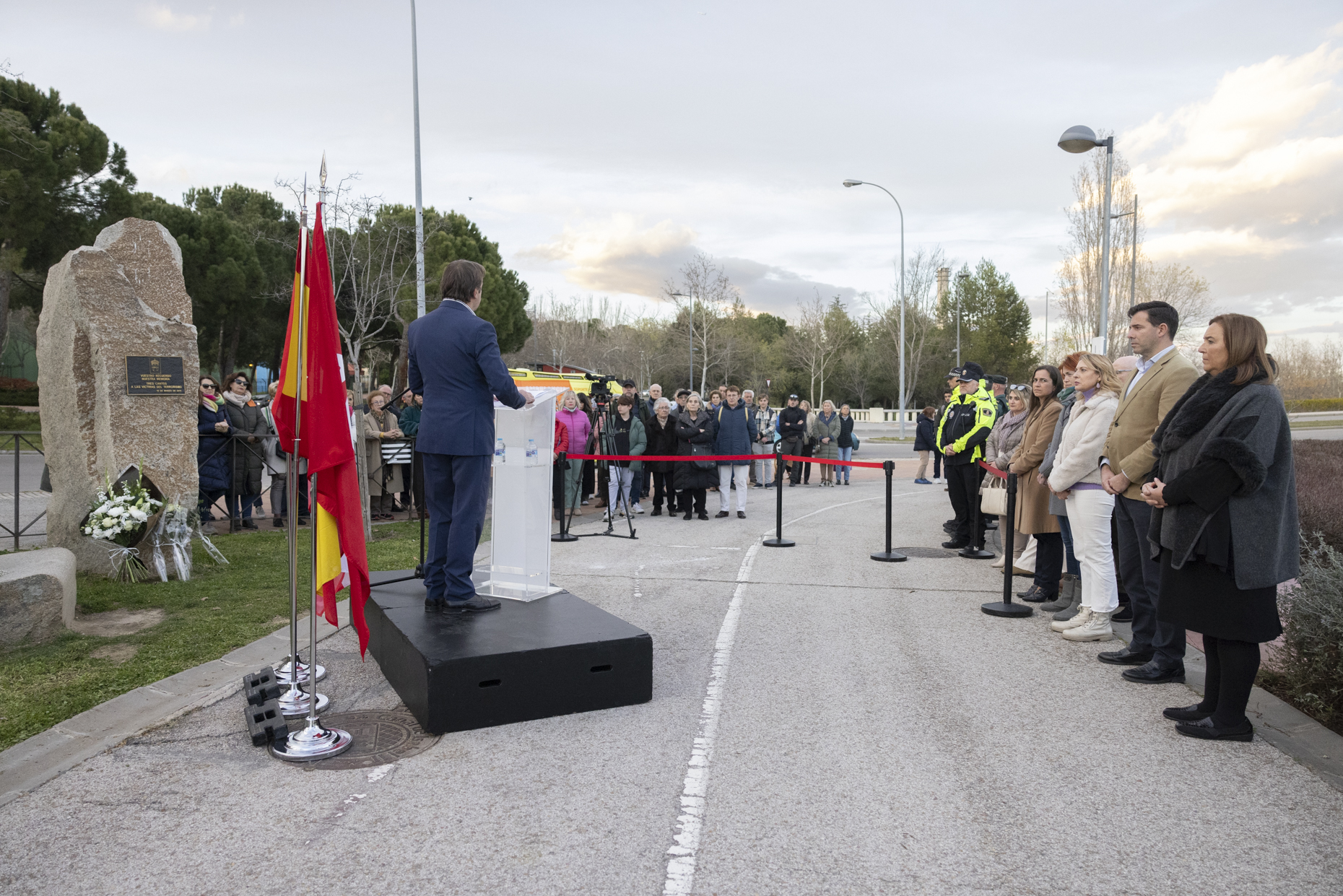Reunidos en el monumento de la Plaza de las Víctimas del Terrorismo, se guardó un minuto de silencio, sumándose a la convocatoria de la Federación de Municipios de Madrid, con la posterior lectura de un manifiesto por parte de la presidenta de la Asociación de Víctimas del Terrorismo, Maite Araluce.