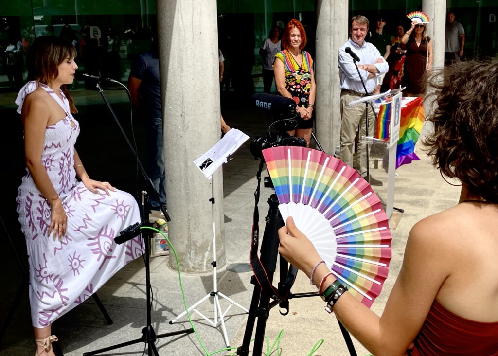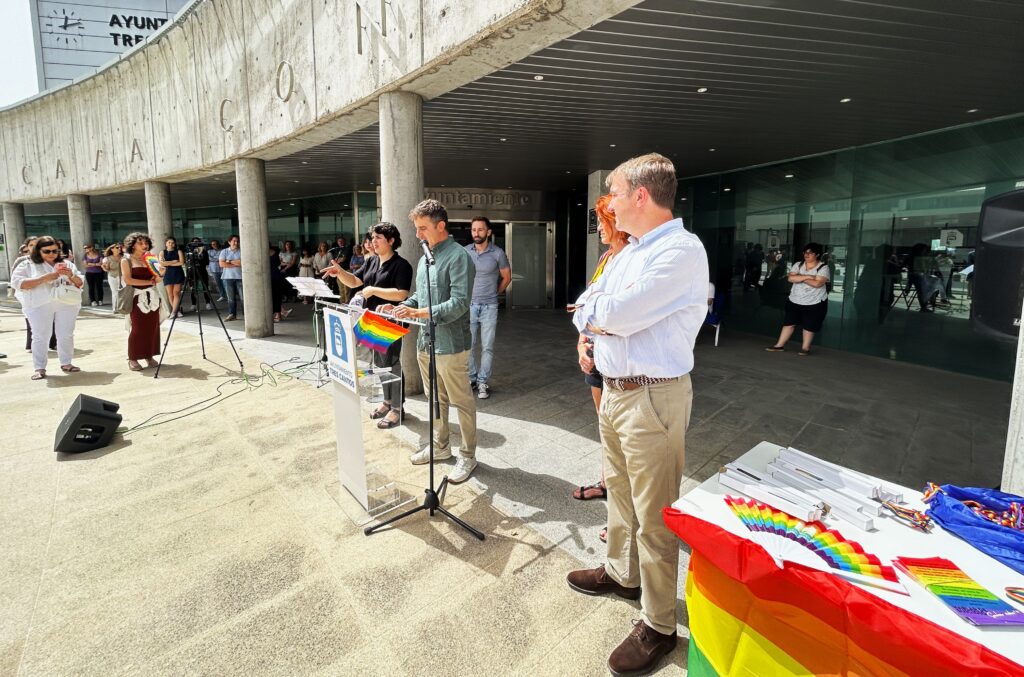 El acto, al que puso música y voz la cantante tricantina Sofía Rico, se ha desarrollado a las puertas del consistorio y pretende apoyar la causa de los colectivos LGTBIQ+ promoviendo, como dice el propio texto “los cambios necesarios para que nuestra sociedad sea más justa, abierta y libre”.