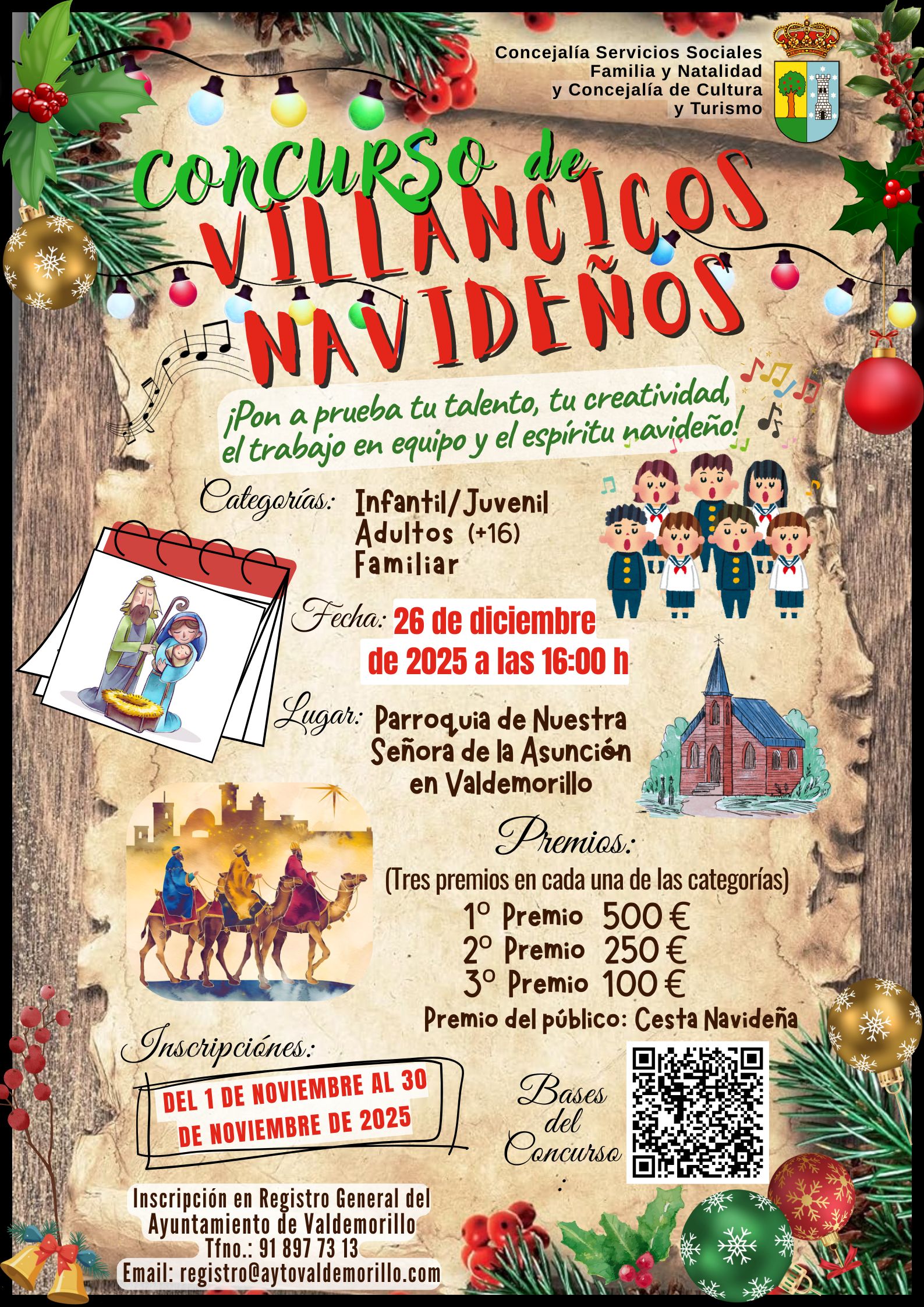 Organizado por la Concejalía de Servicios Sociales, Familia y Natalidad y el área de Cultura y Turismo, el primer Concurso de Villancicos Navideños es una cita pensada para mantener y difundir este canto popular como expresión musical de la Navidad cristiana.