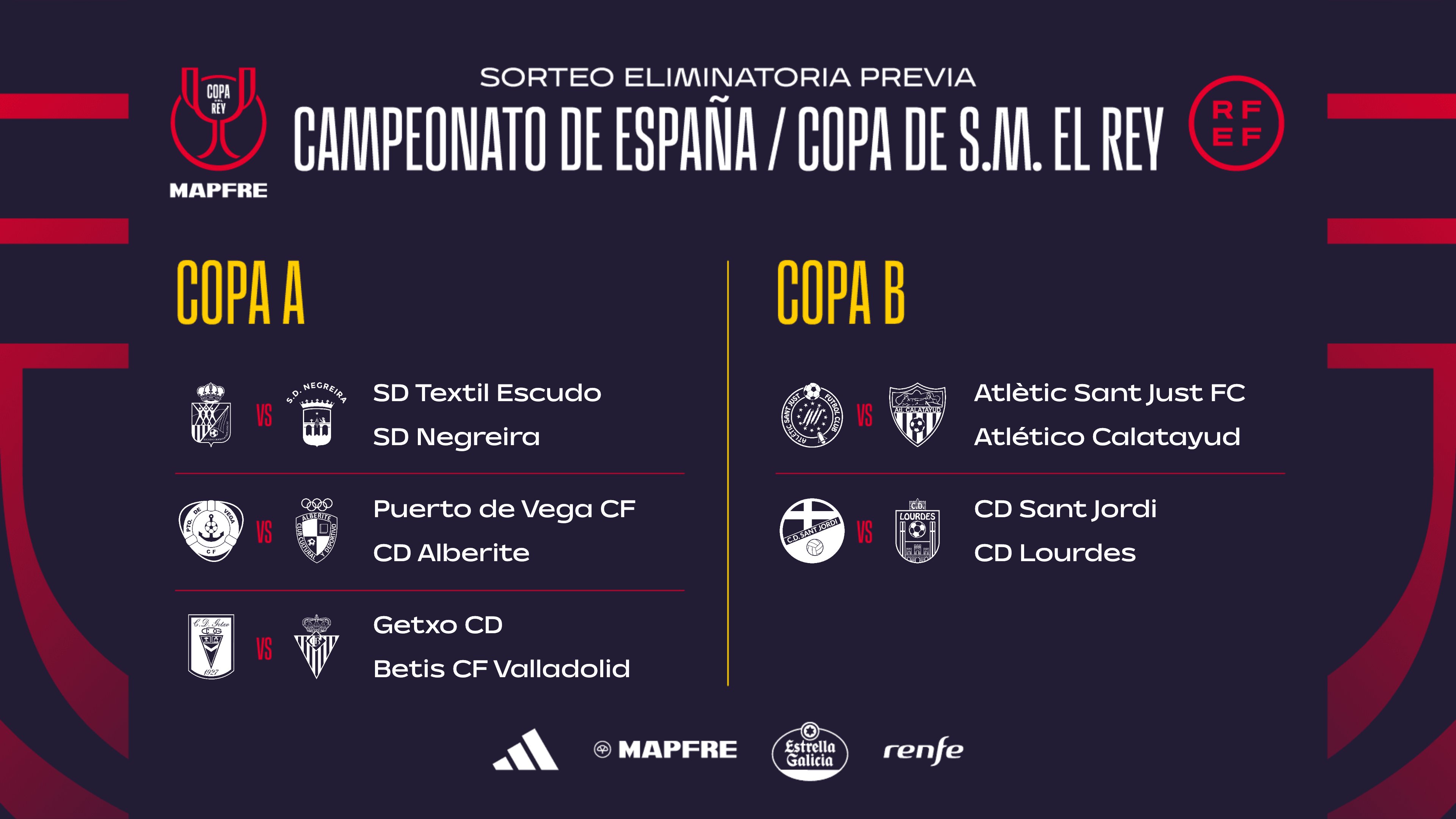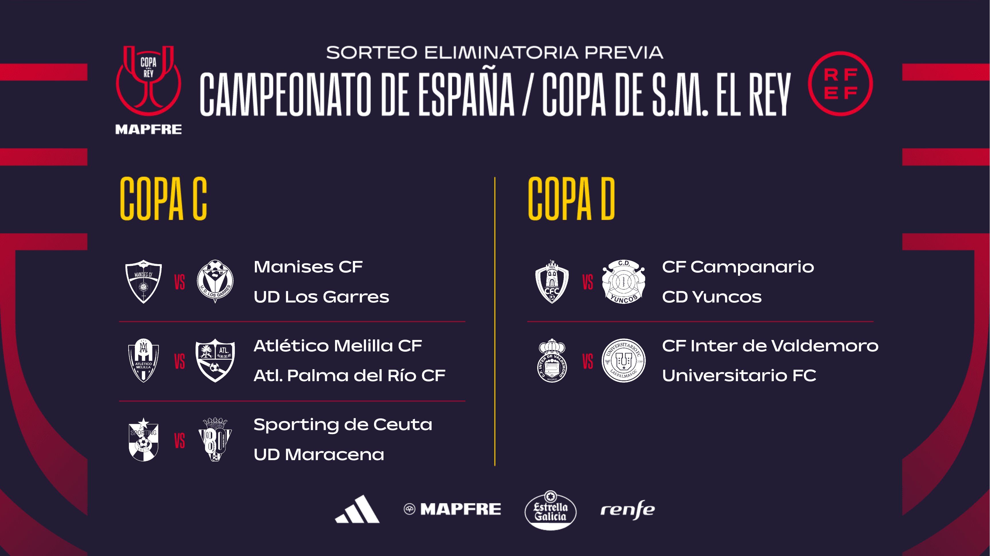 Así ha quedado el cuadro al completo de la eliminatoria previa de la Copa del Rey con los 20 equipos del fútbol territorial: