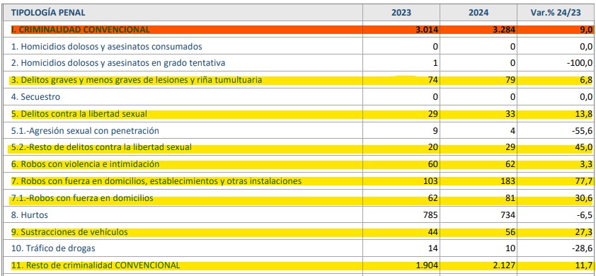 La criminalidad convencional arroja los datos más preocupantes con una subida del 9%