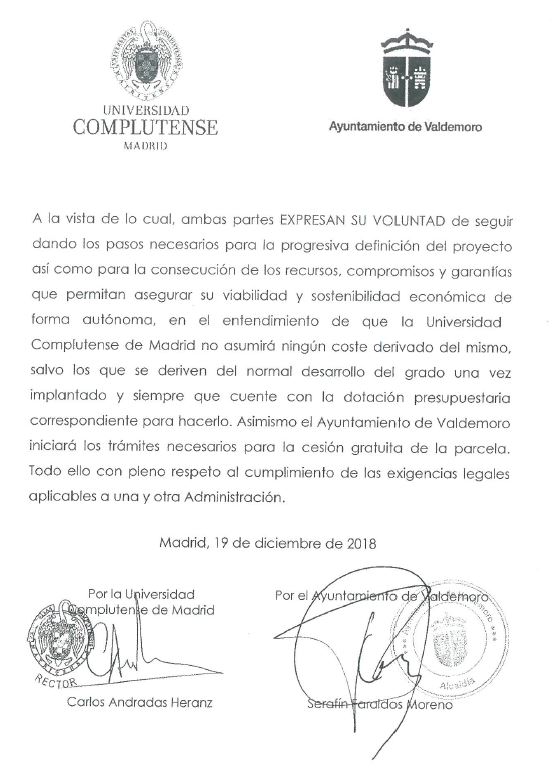 El acuerdo entre Ayuntamiento y la Universidad Complutense de Madrid (UCM) en la Declaración de Intenciones firmada el 19 de diciembre del 2018, donde ambas partes se comprometían a impulsar un proyecto de creación del Campus Sur, ha caído en saco roto.