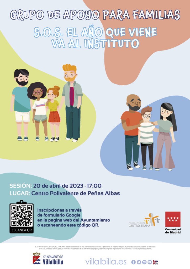El contenido de la actividad está relacionado con los miedos de padres, madres e hijos ante el inicio de una nueva fase en su desarrollo evolutivo, por lo que se trabajará la comunicación positiva y el establecimiento de límites y normas ante esta etapa. La primera de estas sesiones se ha celebrado bajo el título “S.O.S. El año que viene va a al instituto” en el Centro Polivalente de Peñas Albas. Es necesaria la inscripción previa a través de formularios habilitados a tal efecto, en la página web del Ayuntamiento o escaneando el código QR de la imagen.