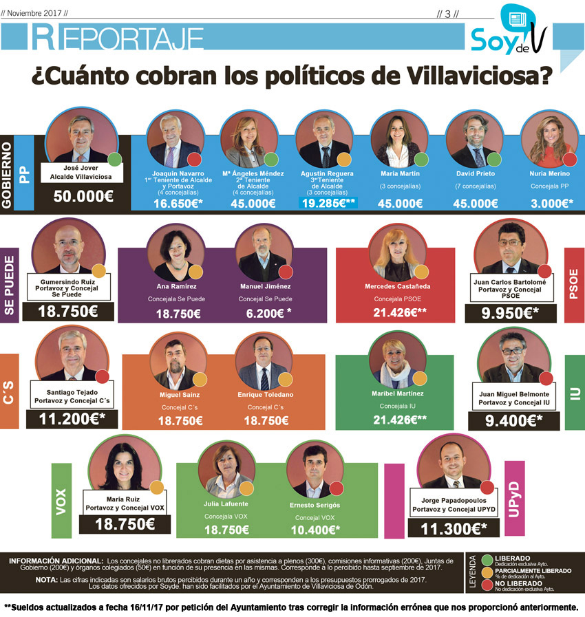 Desde Soyde. hemos hecho un análisis de los sueldos de nuestros políticos locales, calculando el total del gasto municipal y lo que pagamos cada villaodonense al año por que dirijan y gestionen nuestra ciudad. En esta infografía podréis encontrar lo que cobran nuestros dirigentes, todas las personas que participan de las decisiones de nuestro municipio sea como Equipo de Gobierno o dentro de la oposición. Nos parezca mucho o poco no nos toca juzgarlo a nosotros, os toca a vosotros.
