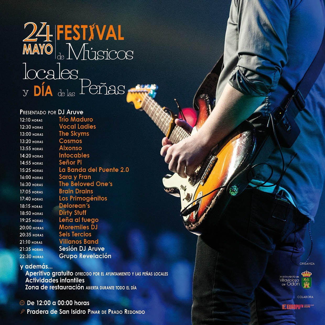 Villaviciosa celebra, un año más, el Festival de Músicos Locales, evento cuyo objetivo es impulsar el talento del municipio en este ámbito. Dieciocho bandas se subirán el próximo 24 de mayo al escenario situado en el Pinar de Prado Redondo (Pradera de San Isidro) para deleitar al público con sus espectaculares directos, además del grupo revelación, que pondrá el broche final a los conciertos.