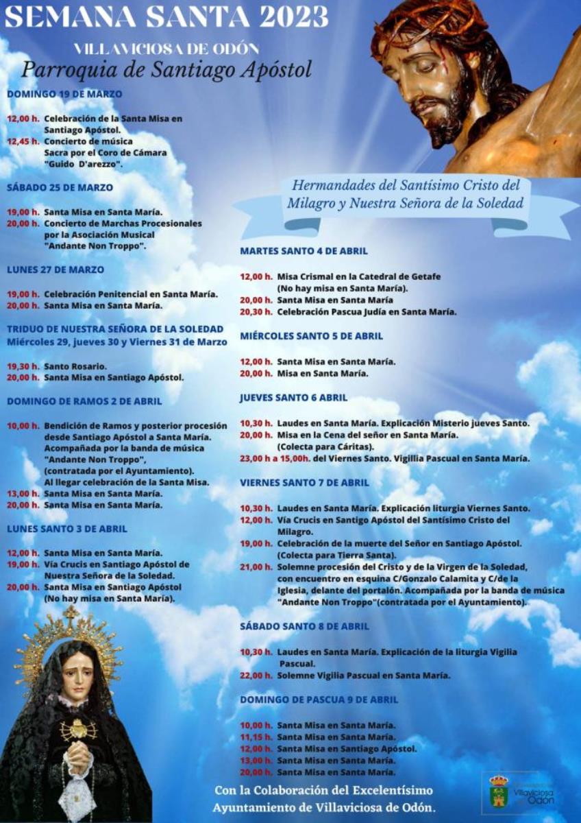 Desde el 19 de marzo, Villaviciosa de Odón ha sido partícipe de una gran cantidad de eventos relacionados con el ámbito de la religión. Se han llevado a cabo una serie de misas, así como conciertos de coro de cámara y marchas profesionales de la Asociación Musical. De hecho, el lunes 27, se desempeñó una celebración penitencial en Santa María.