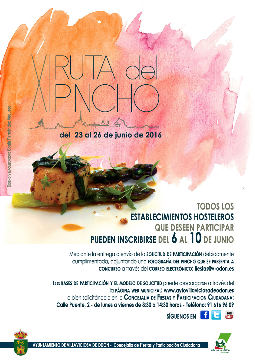 El plazo de inscripción para todos aquellos establecimientos hosteleros que deseen inscribirse para esta Ruta es del 6 al 10 de junio, mediante la entrega de la solicitud o su envío vía email, junto con la solicitud de participación bien cumplimntada adjuntando una fotografía del picho que se va a presentar al concurso a través de este email: fiestas@v-odon.es