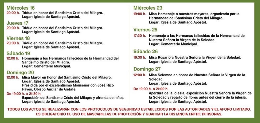 Todos estos actos se celebrarán cumpliendo los protocolos de seguridad establecidos por las autoridades sanitarias.