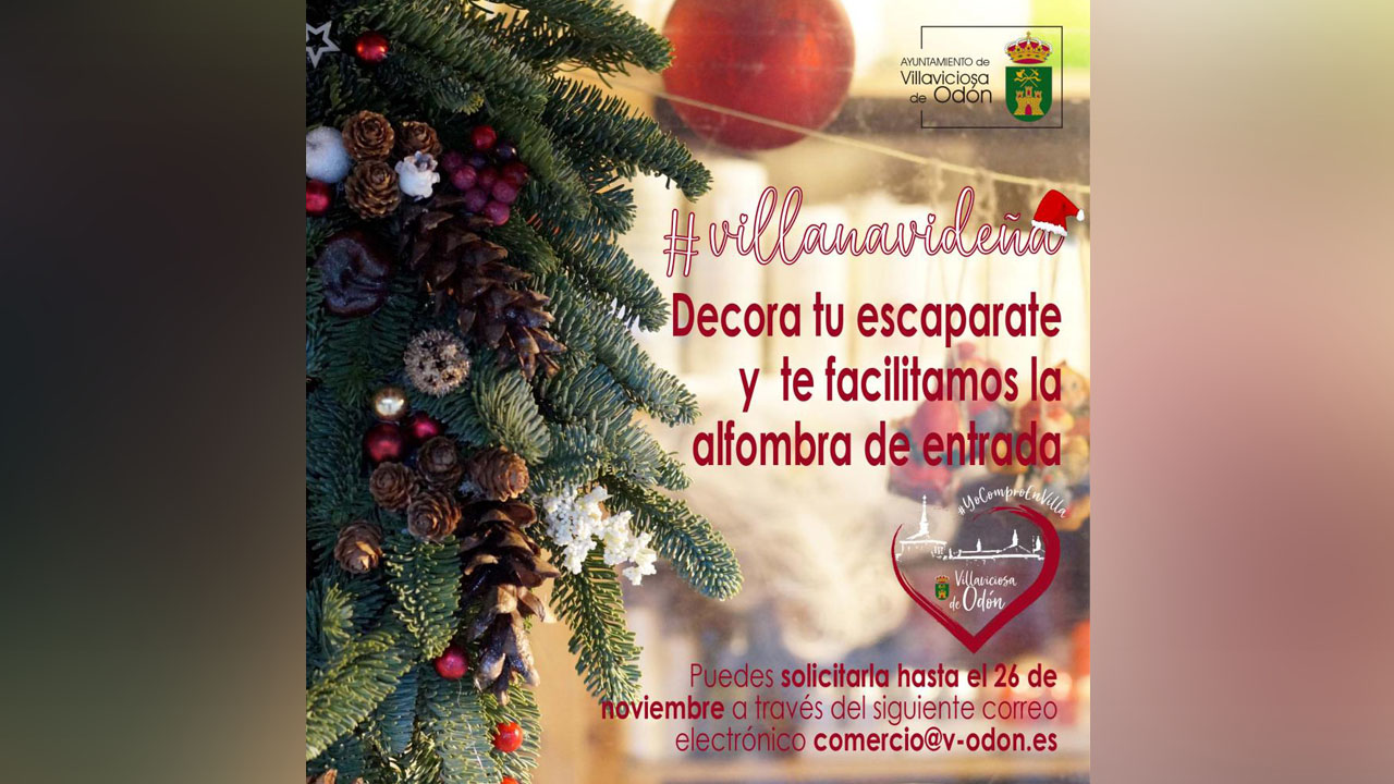 Con el propósito de que los comercios locales luzcan mejor que nunca, y sean aún más atractivos en las fechas navideñas, el Ayuntamiento de Villaviciosa de Odón entregará una Alfombra roja a cada uno para que la coloque a la entrada de su local. Los establecimientos que participen en esta iniciativa, incluida en la campaña de fomento del comercio local "Yo compro en Villa", deberán adornar también sus escaparates para promover así las compras en el municipio villaodonense. La fecha límite para solicitar la alfombra es el viernes 26 de noviembre, debiendo el titular del establecimiento escribir un correo electrónico a la dirección comercio@v-odon.es ,donde se especifique el nombre y ubicación del comercio. Además, habrá que incluir el teléfono de contacto para que el Ayuntamiento indique en fechas posteriores la forma de recogida de la alfombra.