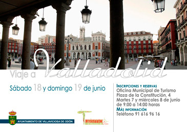Los vecinos de Villaviciosa de Odón que se hayan inscrito durante los días 7 y 8 de junio en la Oficina de Turismo Municipal (situada en la Plaza de la Constitución, número 4) podrán disfrutar de un espectacular viaje a Valladolid durante el próximo fin de semana.
