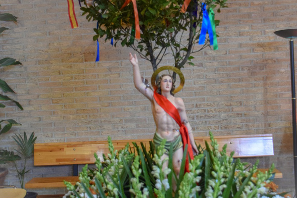 - 10:30 horas. Procesión con nuestro Santo San Sebastián. Al finalizar la procesión, tendrá lugar la tradicional y típica subasta de andas y rifa del ramo de laurel del Santo entre nuestros Hermanos, en la puerta de la Iglesia.